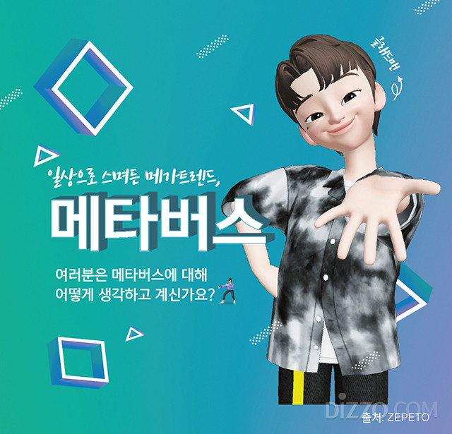 ‘메타버스에 대해 알고 있나요?’에 대한 질문에 알고 있다 66%, 어느 정도는 안다 or 들어 본적 있다 32%, 모른다 2%로 답변했고, ‘어떤 경로로 알게 되었나요(중복 답변 가능)?’에 대한 질문에는 인터넷(61%), SNS(58%), 뉴스(40%) 순으로 높았다. ‘메타버스에 대한 생각은 어떠한가요?’에 대한 질문에는 긍정적 92%, 부정적 8%, ‘긍정적으로 생각하는 이유가 무엇인가요?’에 대한 질문에 ‘비용 없이 전시회, 파티, 놀이공간 등 다양한 공간 체험(49%)’, ‘내가 원하는 부캐(부가 캐릭터)를 다양하게 만들어 볼 수 있음(35%)’, ‘비대면 및 익명성(13%)’ 순으로 높게 나타났다. ‘부정적으로 생각하는 이유가 무엇인가요?’에 대한 답변은 ‘익명성으로 인한 불법, 프라이버시 침해 등 이슈’가 47%로 가장 높았고, 오픈 월드형 온라인 게임과의 차별성 모호, 활성화 어려움, 현실을 모방한 수준의 기술력 등 기술적인 문제점과 비속어나 욕설 표현 등 윤리적인 문제점도 제기했다.