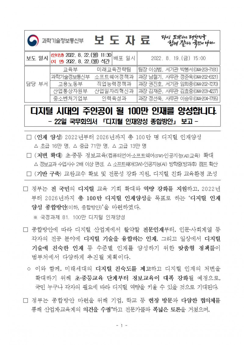 [기사] 디지털 시대의 주인공이 될 100만 인재를 양성합니다.