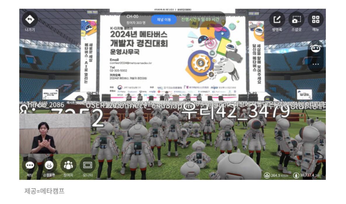 지난해에 이어 올해도 메타버스 개발자 경진대회 후원에 참여한 메타캠프는 대회 취지에 걸맞게 지난 12일 자사의 메타버스 플랫폼 ‘데어’에서 참가자 설명회를 열었다. 총 377명의 참가자들은 데어의 오아시스 행성에 개설된 오리엔테이션 행사장에 모였다.