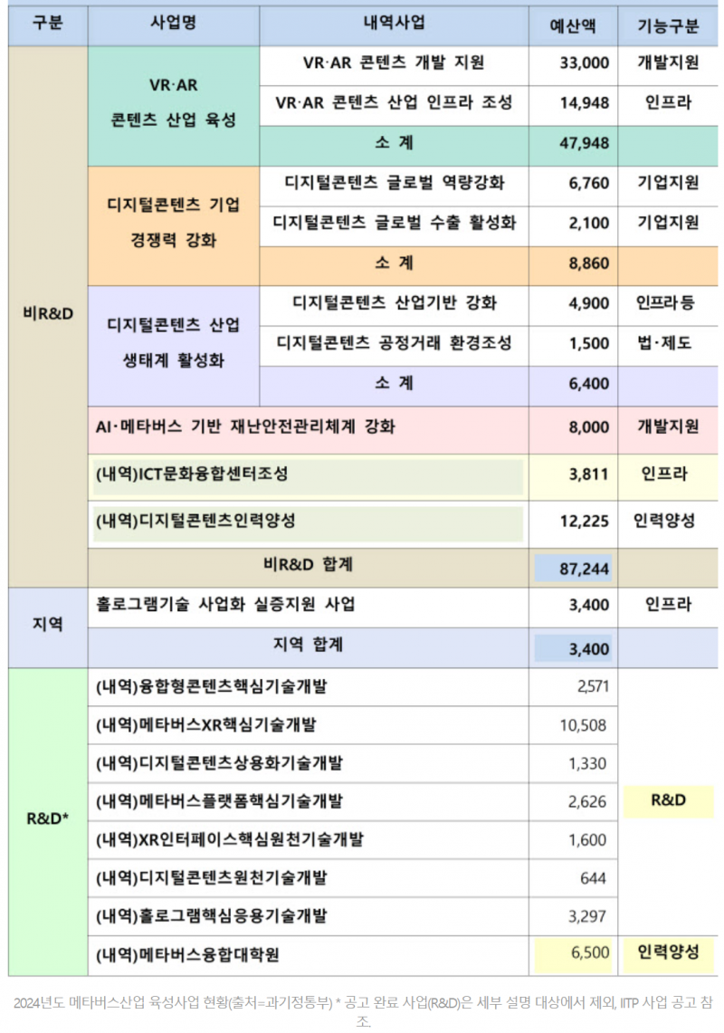 [이데일리 김현아 기자]과학기술정보통신부(장관 이종호)가 국민 일상과 미래 신산업 혁신을 위한 디지털 분야 핵심기술인 메타버스 산업 진흥을 위해 2024년에 총 1197억2000만원을 지원할 계획이라고 28일 밝혔다.