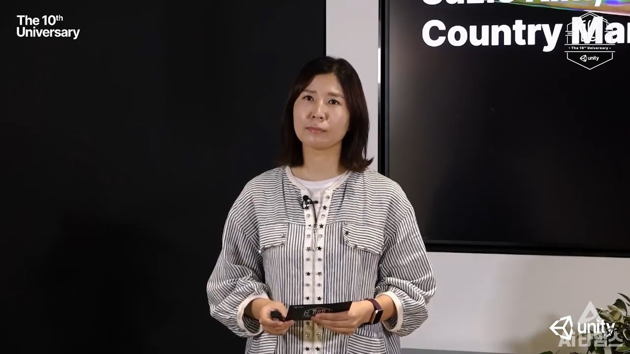 △김인숙 유니티코리아 대표가 설립 10주년 기자간담회에서 "앞으로 국내 실정에 최적화된 다양한 솔루션을 지속 제공하며 국내 기업들의 성장을 적극적으로 지원하겠다"고 말했다. (사진=유니티 기자간담회 캡쳐)