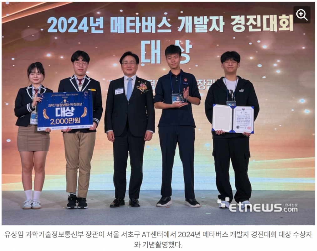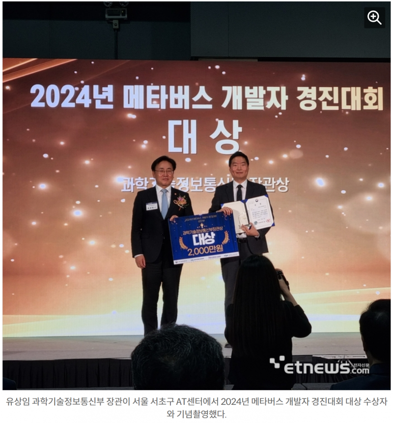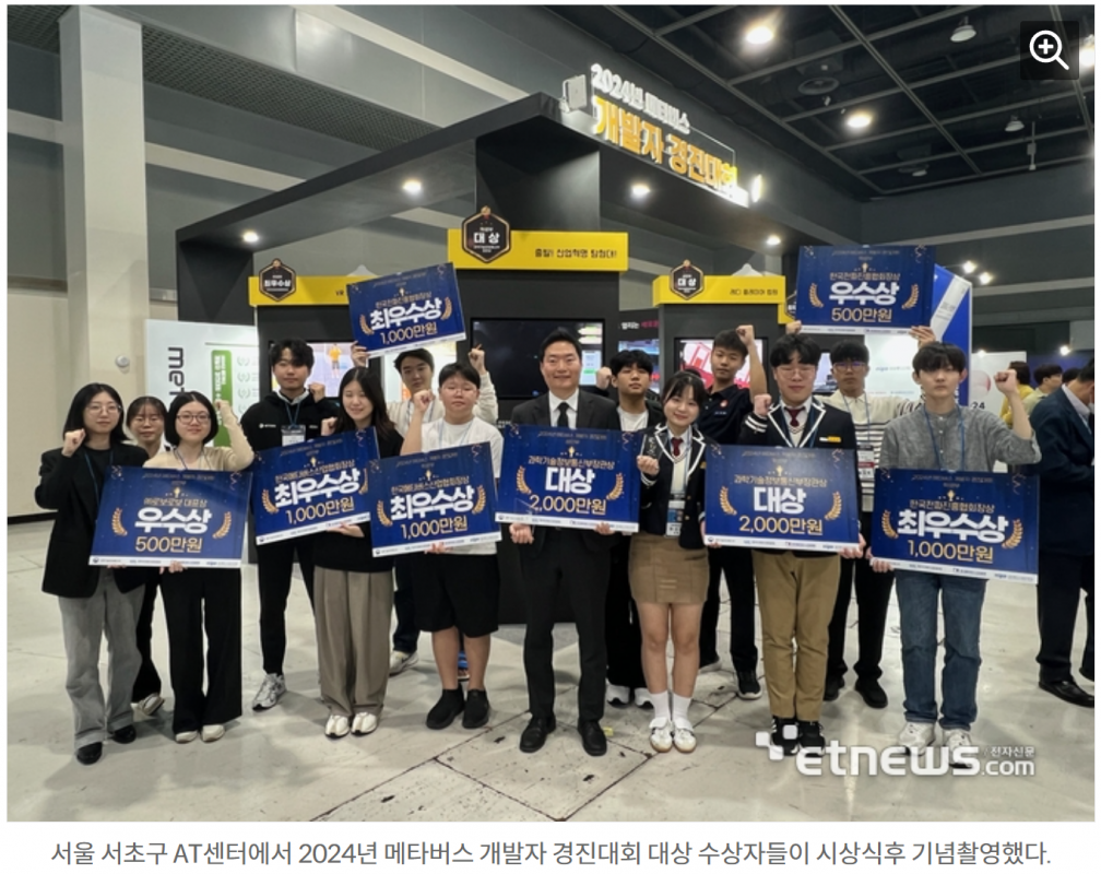 과학기술정보통신부가 주최하고 한국전파진흥협회, 한국메타버스산업협회, 정보통신산업진흥원이 공동주관한 '2024년 메타버스 개발자 경진대회'가 17일 서울시 aT센터에서 개최됐다.