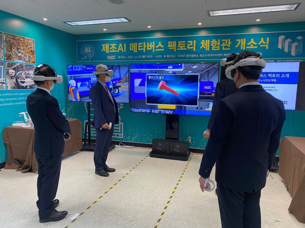KAIST(총장 이광형)는 '제조AI 메타버스 팩토리 체험관(이하, 체험관)'을 1일 대전 문지캠퍼스 내 제조AI빅데이터센터 페어링룸에서 개소, 시현했다. 실제 현장 제조데이터에 AI를 결합, 가상공간에서 분석·활용하는 방식이다.