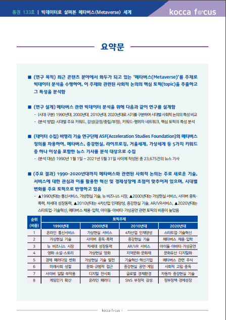 [보고서] 코카포커스 133호_빅데이터로 살펴본 메타버스 세계