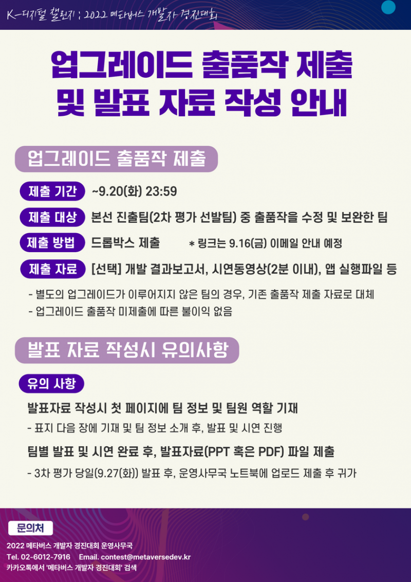 [공지사항] 2022 메타버스 개발자 경진대회 업그레이드 출품작 제출, 3차 평가 및 최종 평가 절차 및 방법 안내