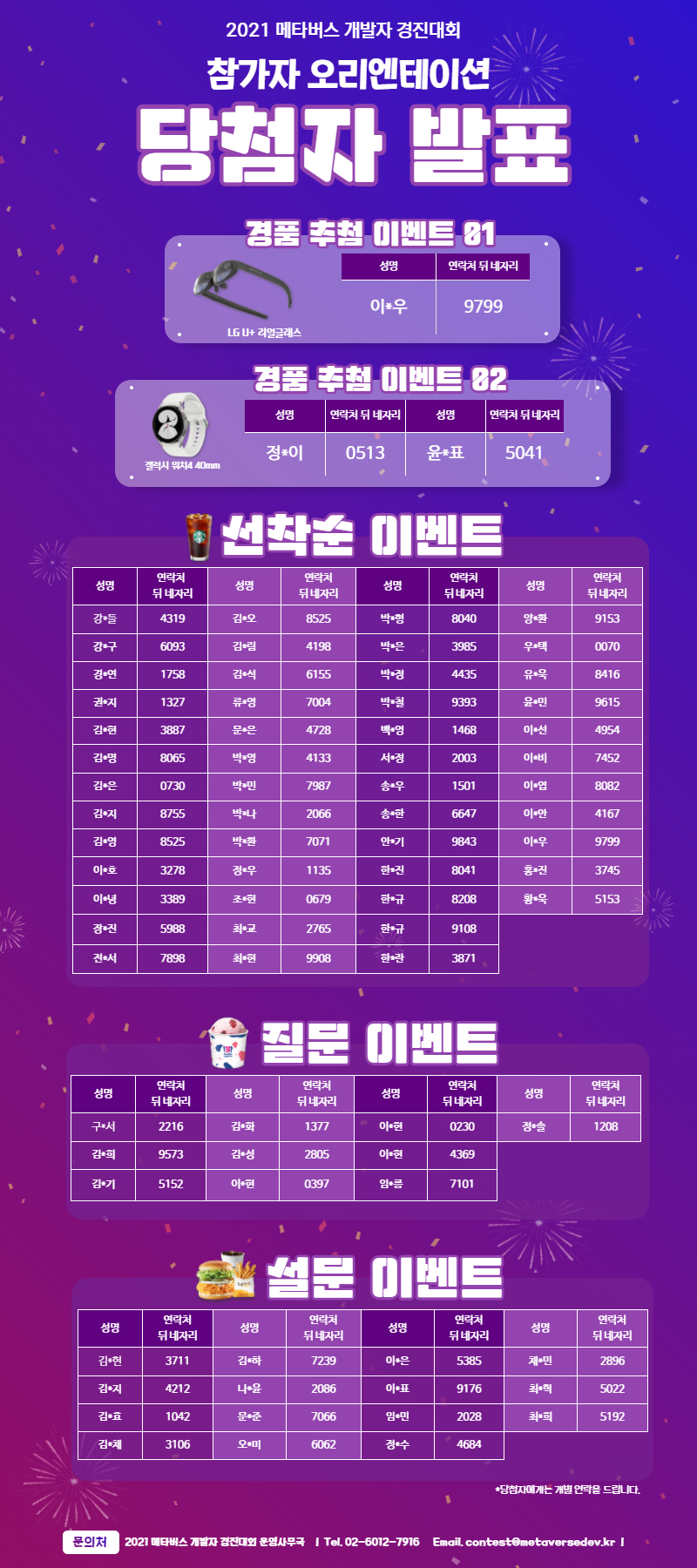 [이벤트] 2021 메타버스 개발자 경진대회 오리엔테이션 이벤트 당첨 결과 안내