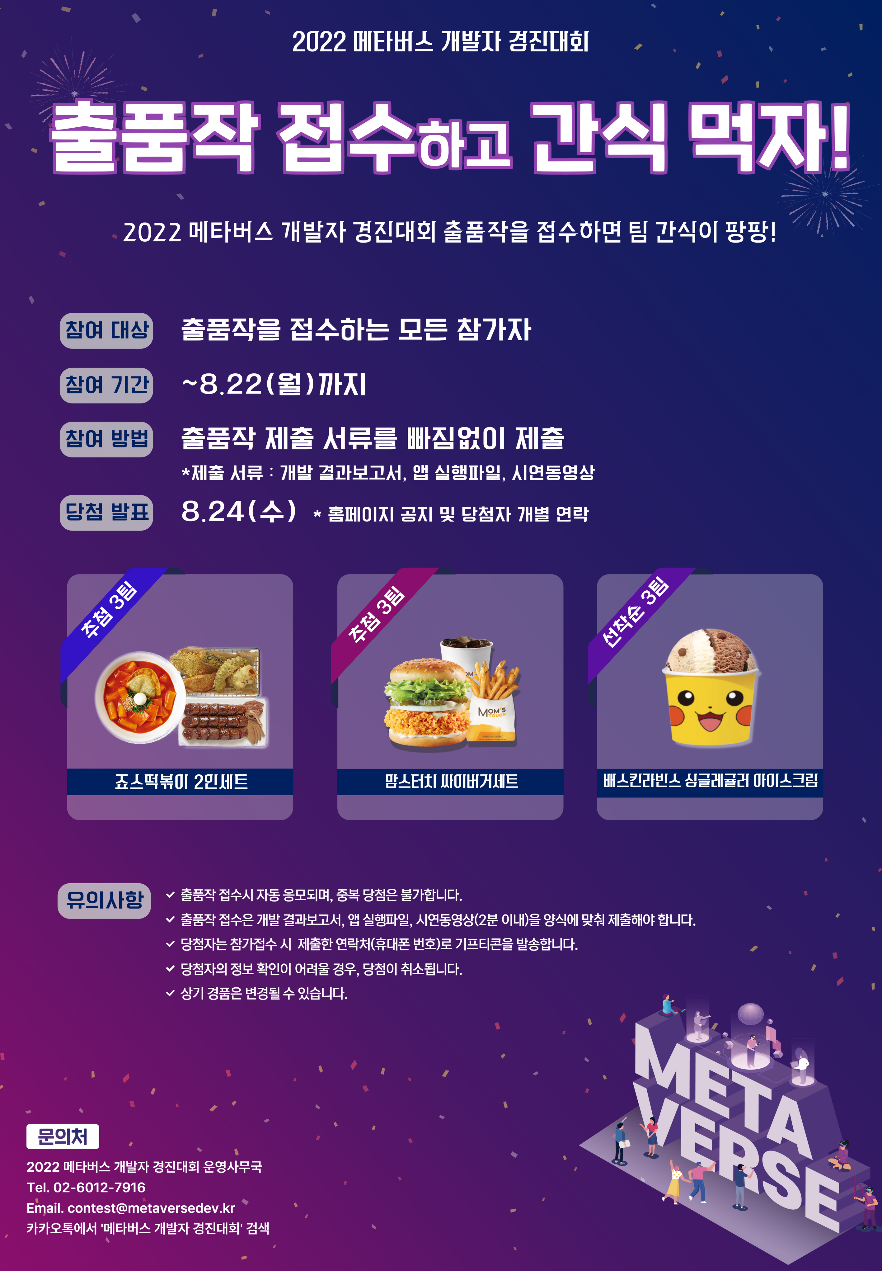 출품작을 접수하면 추첨을 통해 팀이 함께 즐길 수 있는 간식을 드립니다!!