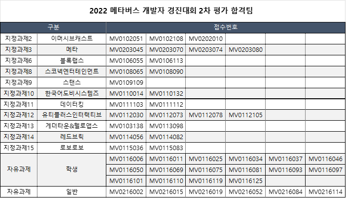 [합격자발표] 2022 메타버스 개발자 경진대회 2차 평가 합격팀 발표