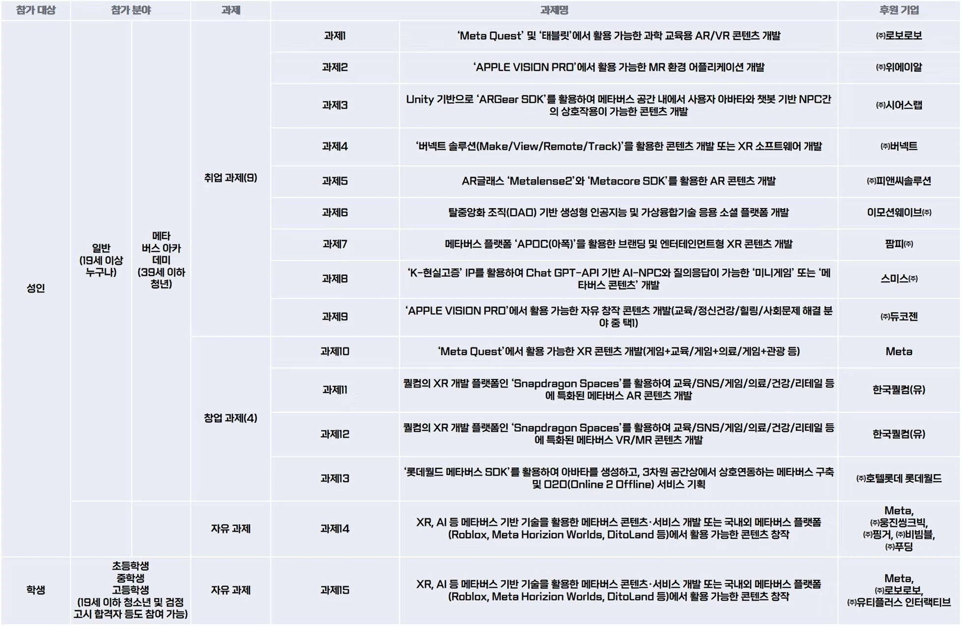 메타버스 서비스·콘텐츠 개발에 관심 있는 누구나(성인/학생)