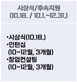 ② (창업컨설팅) 대회 창업과제 수상팀 중 창업 희망자를 대상으로 창업컨설팅 및 창업훈련비 등 창업지원(10~12월)