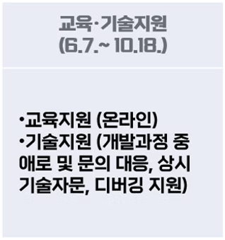 참가팀 대상으로 개발장비, 교육, 교육훈련비 지원